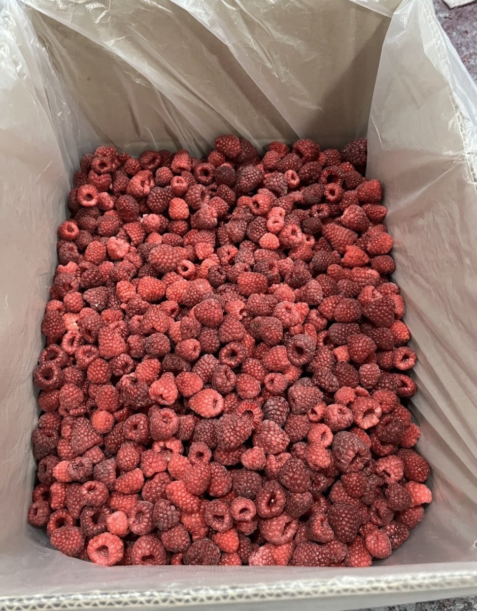Малина быстрозамороженная, упакованная в коробки с вкладышем 10кг.